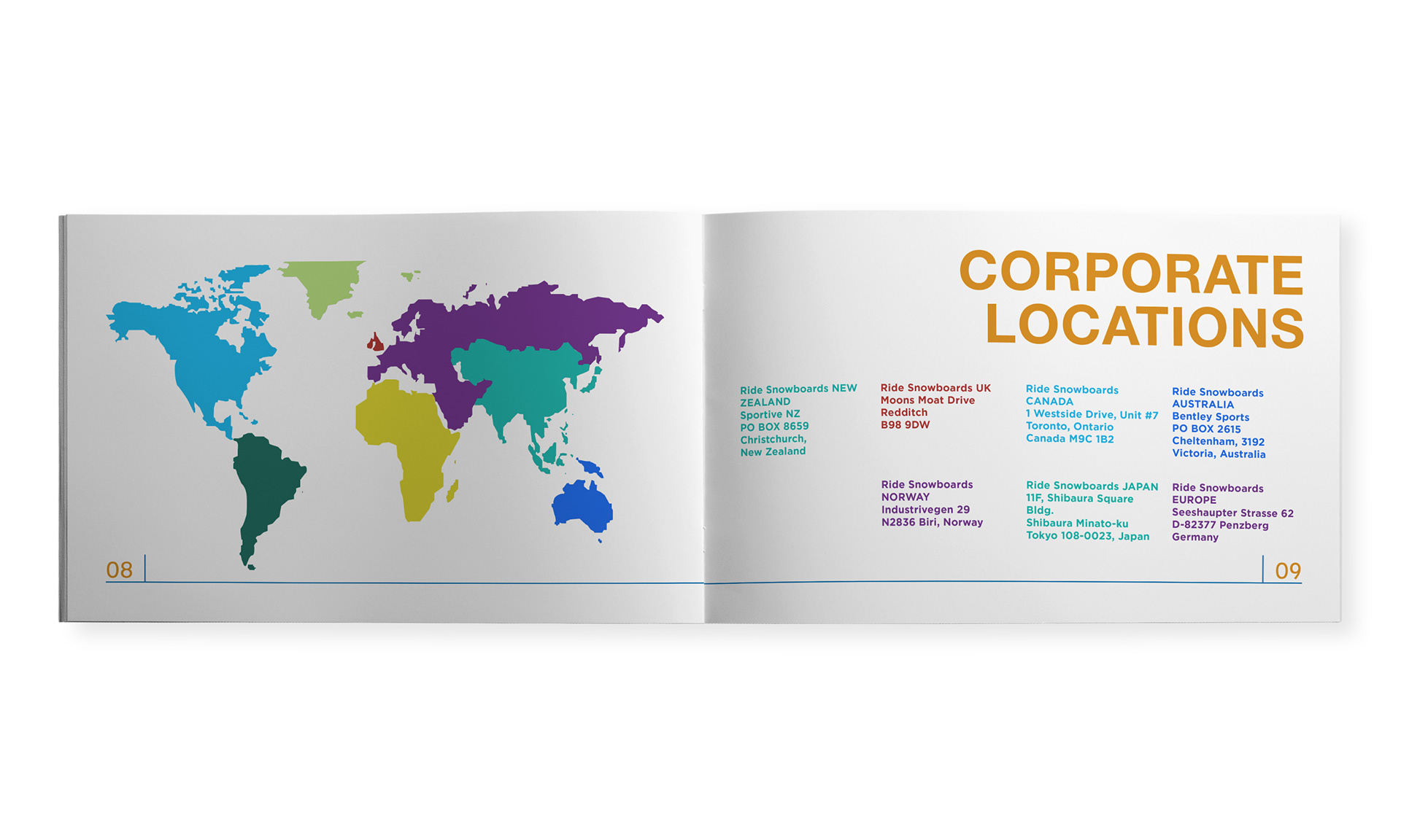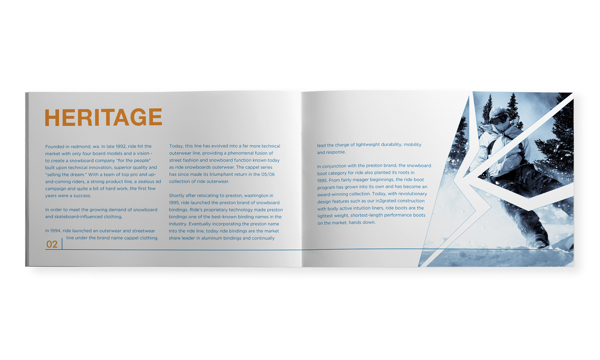 Ride Snowboards started with redesigning their logo and I created a layout that would go with the logo and brand.
